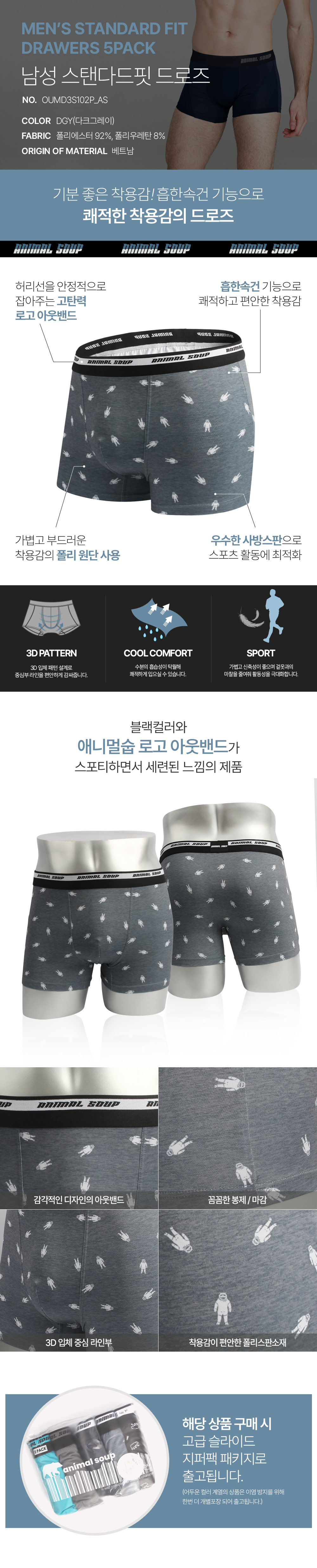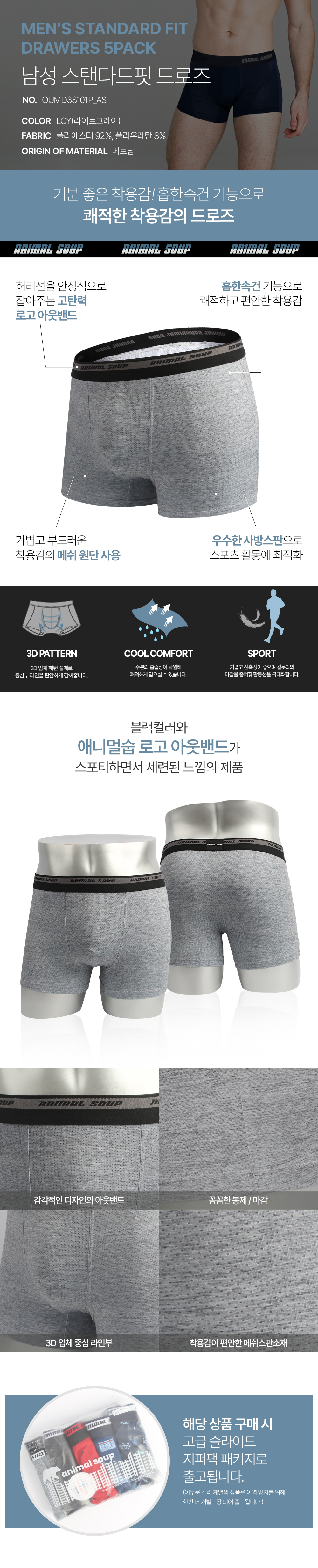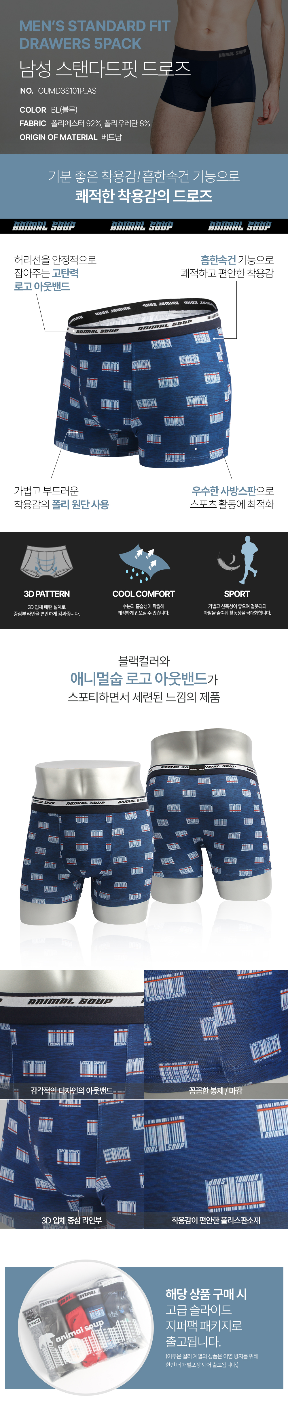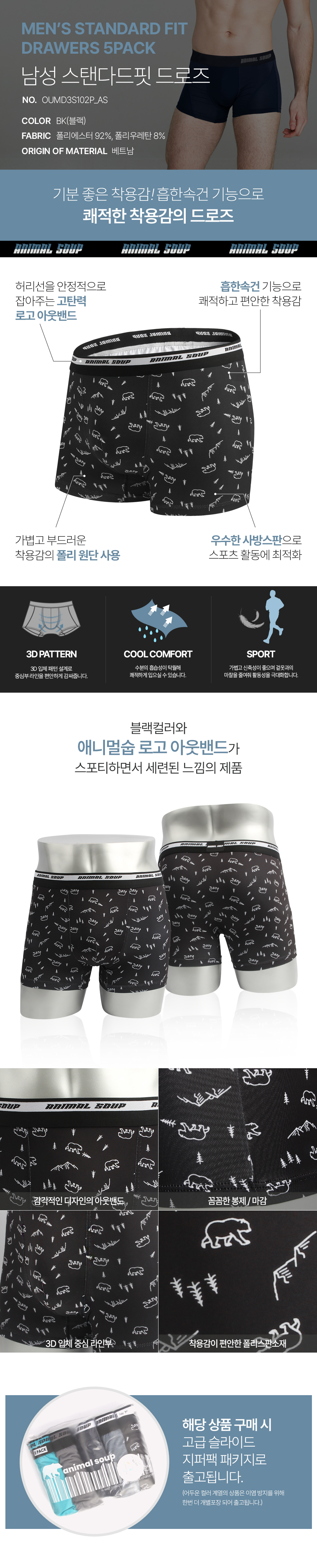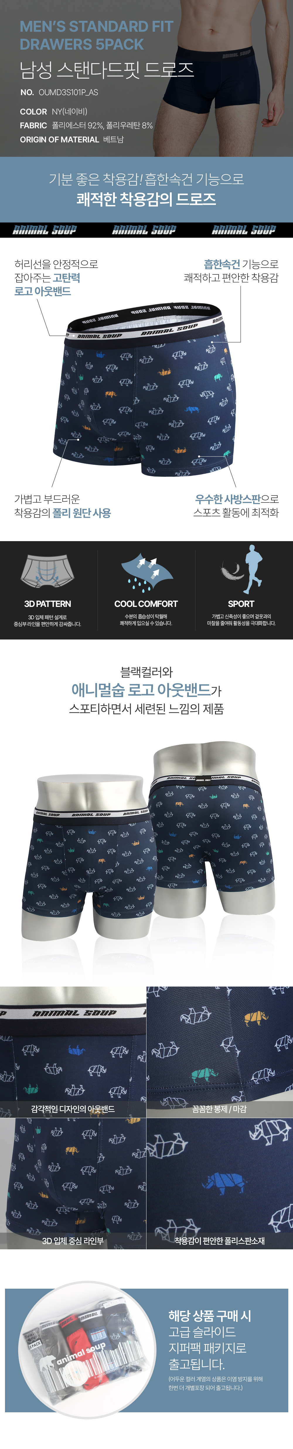 [애니멀숩] 남성 드로즈 5PACK
