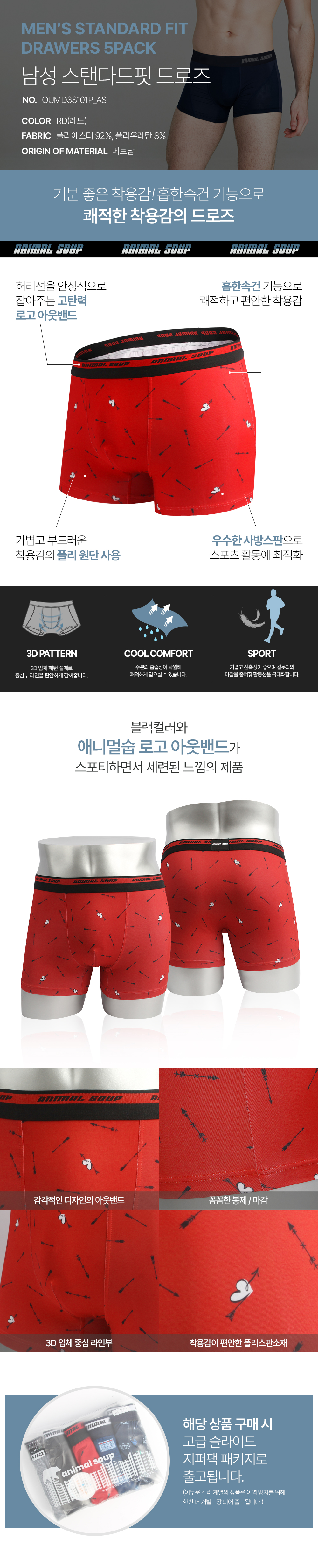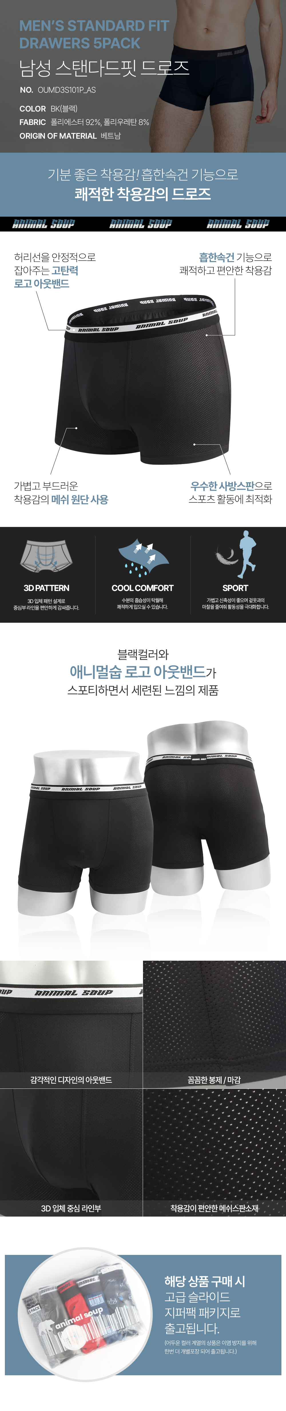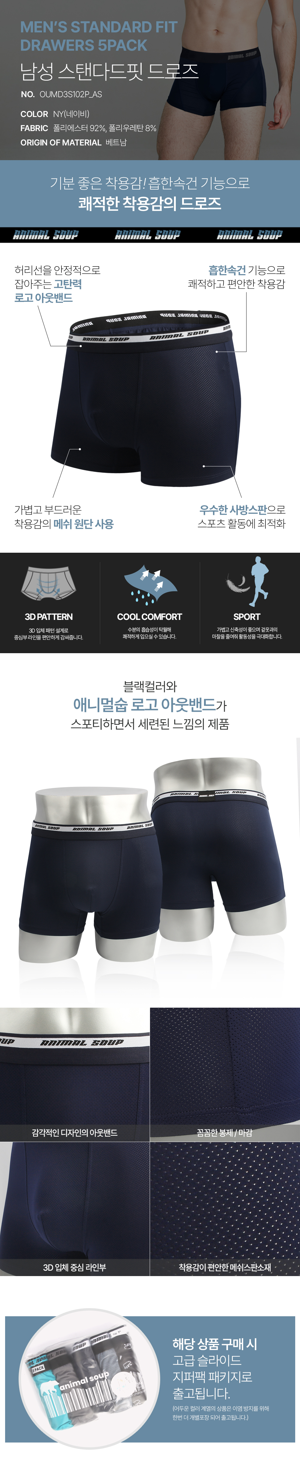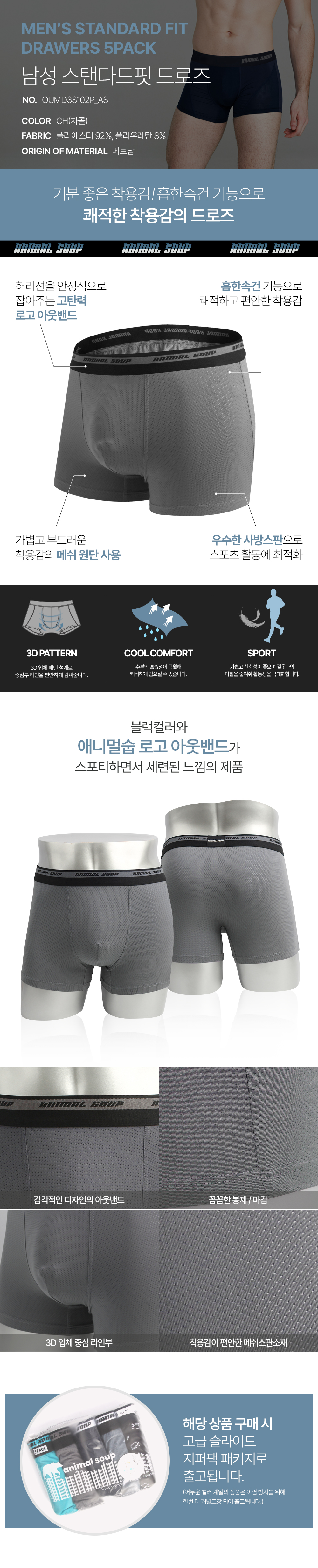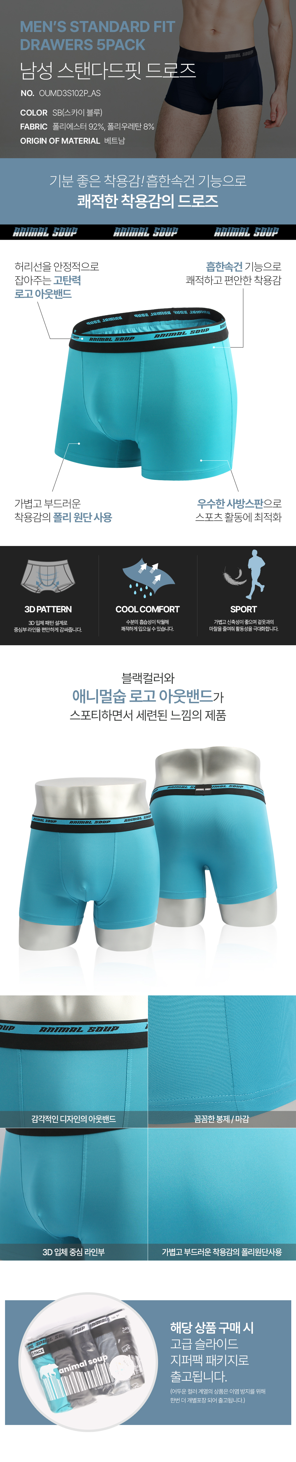 [애니멀숩] 남성 드로즈 5PACK